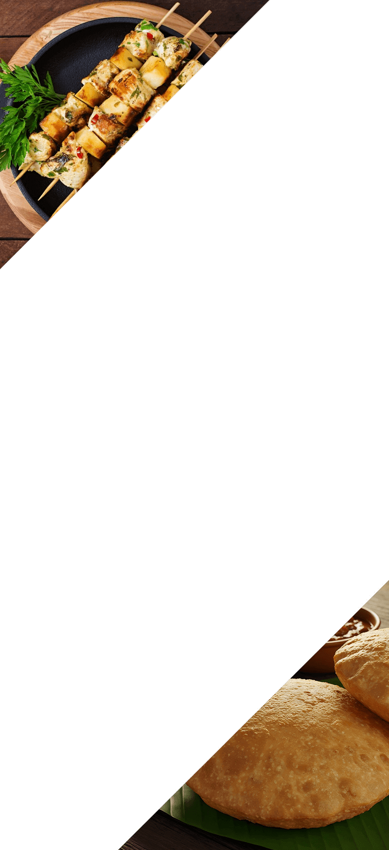 Rich Curries & Kebabs are prepared in both Vegetable and Paneer options according to preference.
